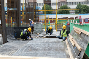 来到项目部,项目施工正处于地下负二层,中雨在前一天持续了近八个小时,由于基坑空气流动性差,加之阳光的直射,让整个工作面完全处于高温闷热的状态。但恶劣的条件并没有影响建设者们的工作节奏,他们头顶烈日,心怀责任,战高温斗酷暑,坚守岗位保进度。木工工人胳膊被晒得脱皮,钢筋工人双手在橡胶手套里泡得发白,汗水流进眼睛……他们简单处理一下,便继续投入到工作中。