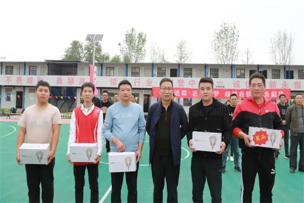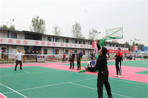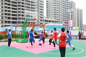 篮球比赛中,转身运球、相互传球、三步上篮、精准进球……这一系列连贯的动作,还有啦啦队的欢呼,不止在专业的篮球比赛场上能够看到,也可以出现在建筑工地的运动场上。两队球员的精彩对抗,赢得了现场观众的阵阵掌声。比赛结束,红队凭借33:24的9分优势获得胜利。