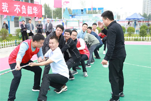 在趣味运动环节,看着热闹的运动场面,公司高层管理者们也纷纷摩拳擦掌跃跃欲试。或是集体跳大绳,大家轻盈自在地穿梭于来回摆动的跳绳之间;或是以默契配合完成的背靠背夹球跑;或是重温童年记忆,推着铁环轻松地穿越障碍物……,多样的趣味项目在比赛的同时也为运动员们带来了欢乐。作为整场运动会的“压轴”项目,拔河比赛在各自队长的指挥和啦啦队的呐喊声中激烈进行,队员们团结协作、拼搏奋斗,坚持不放弃,最后,由安总带领的团队获得了比赛的胜利。