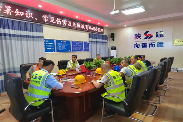6月21日,臻诚实业集团董事长胡仁俭就夏季施工安全管理工作做出重要安排部署,公司特邀西安兵器工业五二一医院医护团队来公司开展夏季高温防暑安全和意外创伤救护知识培训。会后,公司各项目第一时间开展宣贯活动。为全面贯彻落实会议精神,确保各项会议要求落到实处取得实效,做实做细项目日常安全管理工作,切实为公司员工的身体健康和生命安全筑起一道坚固的安全屏障,公司各项目充分利用专题会、班前会等形式,迅速组织管理人员进行培训内容的学习: