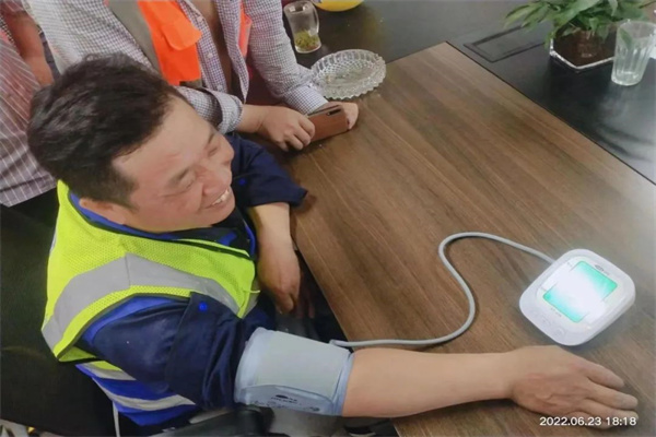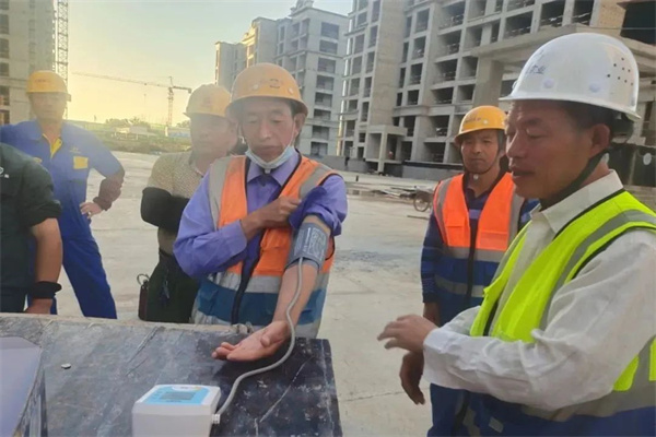 近日,西安市气象台连续发布多个高温预警信息,持续的高温会使人感到不适,容易引发中暑、肠道疾病和心脑血管疾病等,为避免项目工人因高温天气引发的高血压,掌握大家的身体健康状况,臻诚实业集团各项目分别配备血压仪,针对重点人群、特殊岗位人员随时进行血压监测并建立台账,及时发现血压异常问题,安排员工立即停止工作并及时就医,为员工的健康保驾护航。