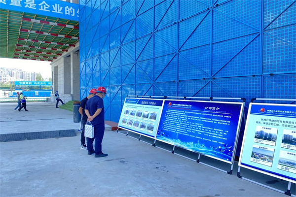 观摩人员通过展板展示和现场讲解,全面深入了解陕西日升建筑劳务有限责任公司的企业发展历程、公司资质、重点参建项目、企业文化和团队建设等方面的内容。