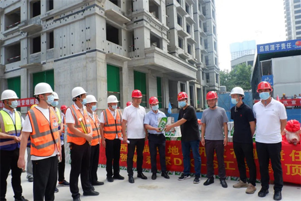 以赤诚之心践行承诺,以严格标准筑造精品。作为重点民生工程,项目建设过程中,臻诚实业集团董事长胡仁俭高度重视,多次深入项目施工一线检查指导工作,对项目重点建设节点做出重要安排部署,为项目配备了各项优质资源。副总经理段昌斌在项目部带领大家协同作战,及时沟通解决工作中遇到的困难,项目经理、管理人员和广大工友勇挑重担,冲锋在前,努力克服因第十四届全国运动会和新冠疫情对工期带来的影响,在高温三伏天里切实发扬“敢打硬仗,能打胜仗”的铁军精神,日夜奋战,实现了项目的顺利封顶。
