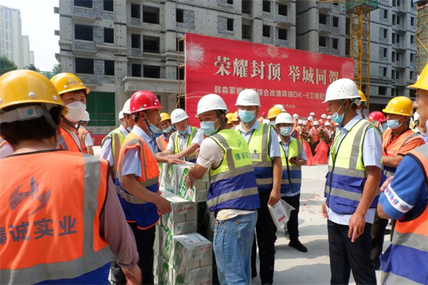 炎炎夏日,暑气正盛,臻诚实业建设者们的建设热情也持续高涨。7月25日,由臻诚实业集团下属的陕西日升建筑劳务有限责任公司负责主体结构建设的韩森冢棚户区综合改造项目DK-6工程初战告捷,封顶仪式圆满举行。