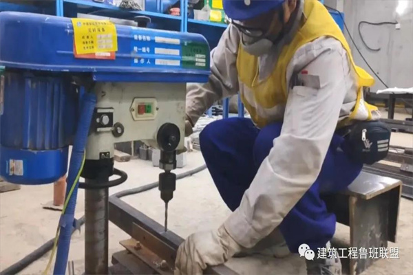 在综合支吊架横杆上需要开孔的位置进行标注,使用台钻进行开孔。