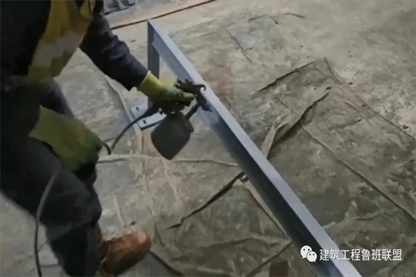 对制作好的支架喷涂红丹防锈底漆两遍,待第一遍干燥后再喷第二遍,喷漆时采用勤移动、短距离的原则,防止喷漆太多而流坠。