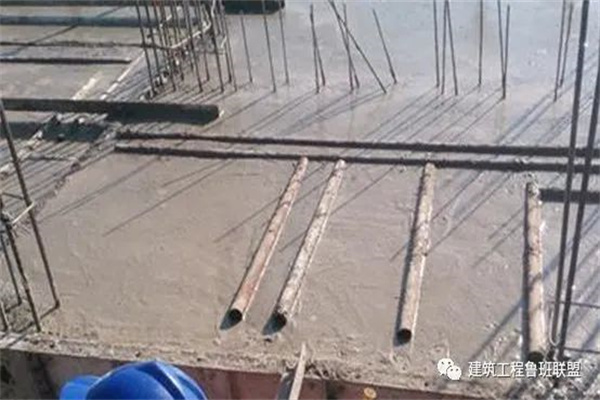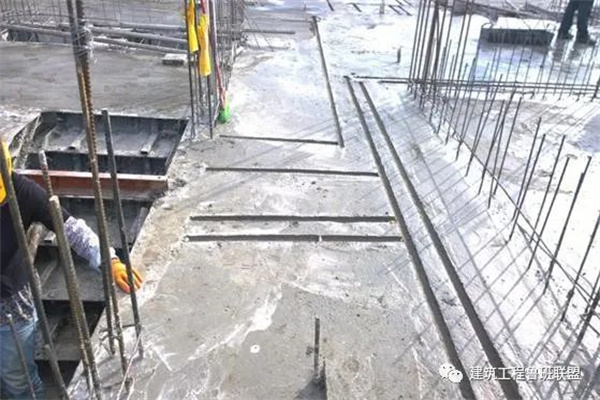 针对给水管道敷设于地面的工程,为避免后期开槽对结构的破坏,以及产生的污染、人力及财力等问题,推荐在预留预埋阶段就一次压槽成型。地面压槽工艺通常有两种做法:钢管压槽和模具压槽,本文分别以中建及中天项目示例,来看一下现场做法。