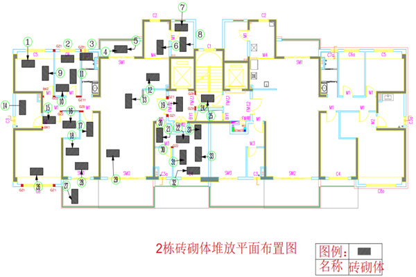 根据各栋号加工清单集中切割,按规格型号堆码,标识清楚栋号及使用部位;各楼层均按平面布置图,提前运输至相应区域堆放。
